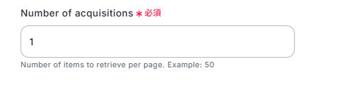 「Number of acquisitions」で1ページあたりに取得するアイテム数を指定します。今回は1としました。