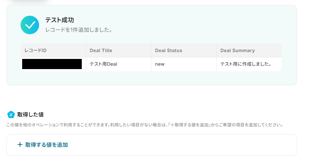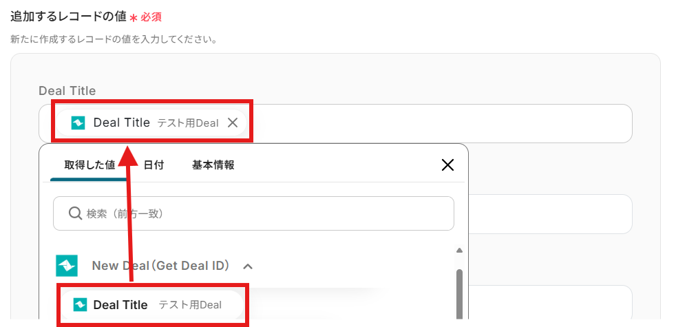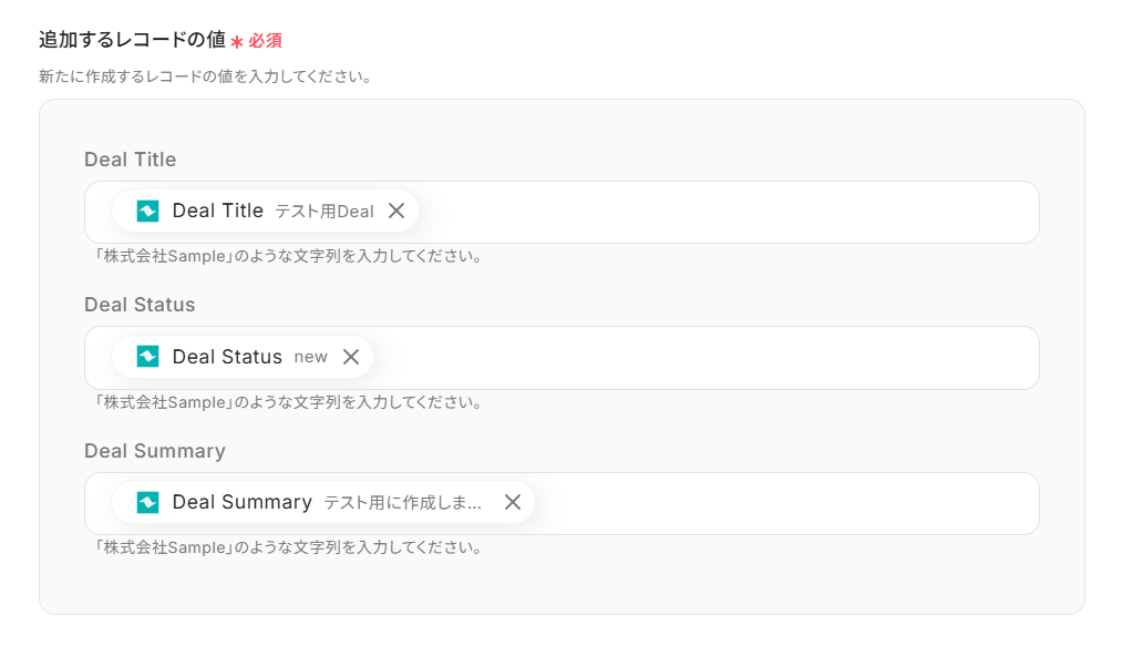 「追加するレコードの値」を設定しましょう。