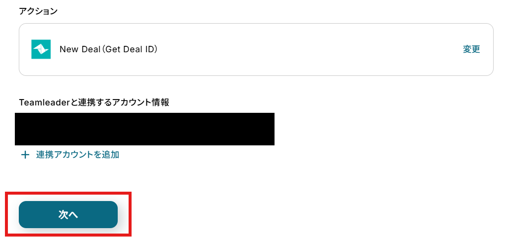 「Teamleaderと連携するアカウント情報」を確認し、「次へ」をクリックして進んでください。