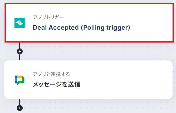 トリガー と呼びます。 「Deal Accepted (Polling trigger)」という項目をクリックしてください。
