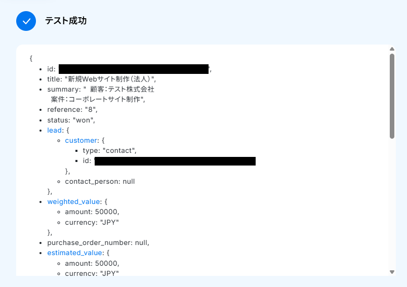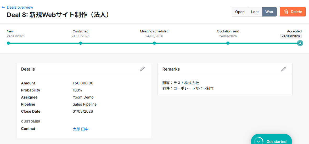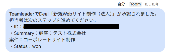 次に、トリガーの動作テストをおこないます。 Teamleaderにテスト用のDealを作成し、承認してください。(架空の設定で問題ありません。)