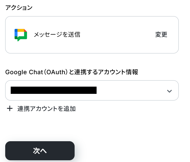 Google Chat(OAuth)と連携するアカウント情報を確認し、次のページに進みます。