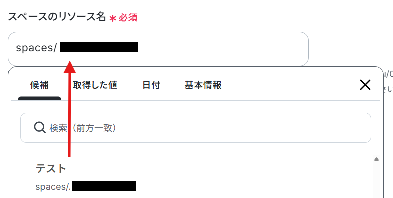 スペースのリソース名は、入力欄をクリックすると表示される候補リストから選択しましょう。