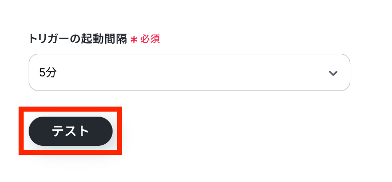 - トリガーは5分、10分、15分、30分、60分の間隔で起動間隔を選択できます。