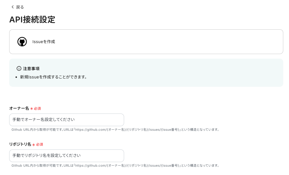 GitHubと連携してIssueを自動作成するための設定を行います。