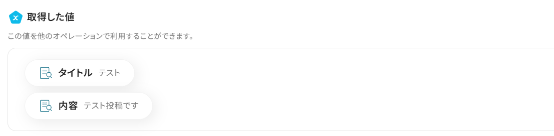 入力欄をクリックすると、前段で取得したアウトプットを選択できます。