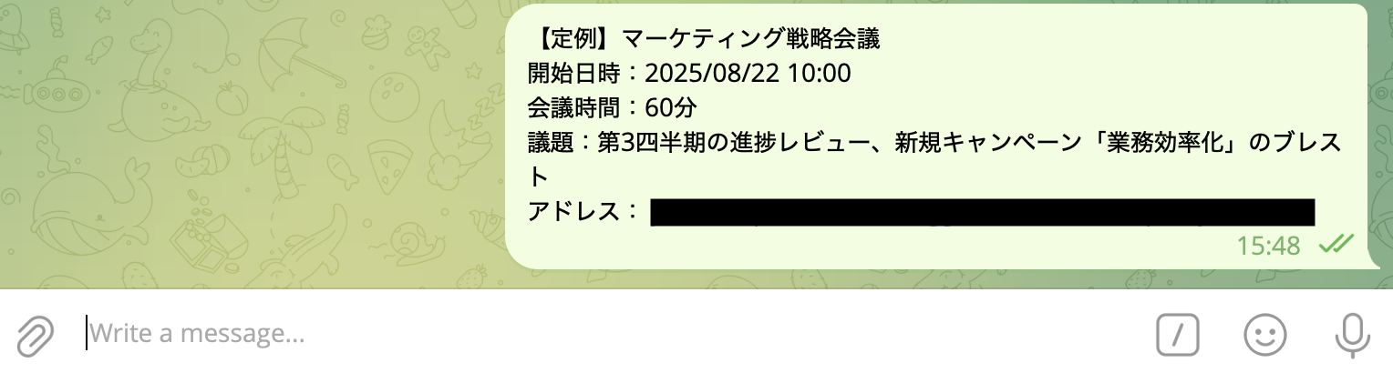 もし、Telegramでの投稿をきっかけに、自動でZoomミーティングが作成される仕組み があれば、こうした日々の細かな手間から解放され、よりスムーズな業務連携を実現できます。