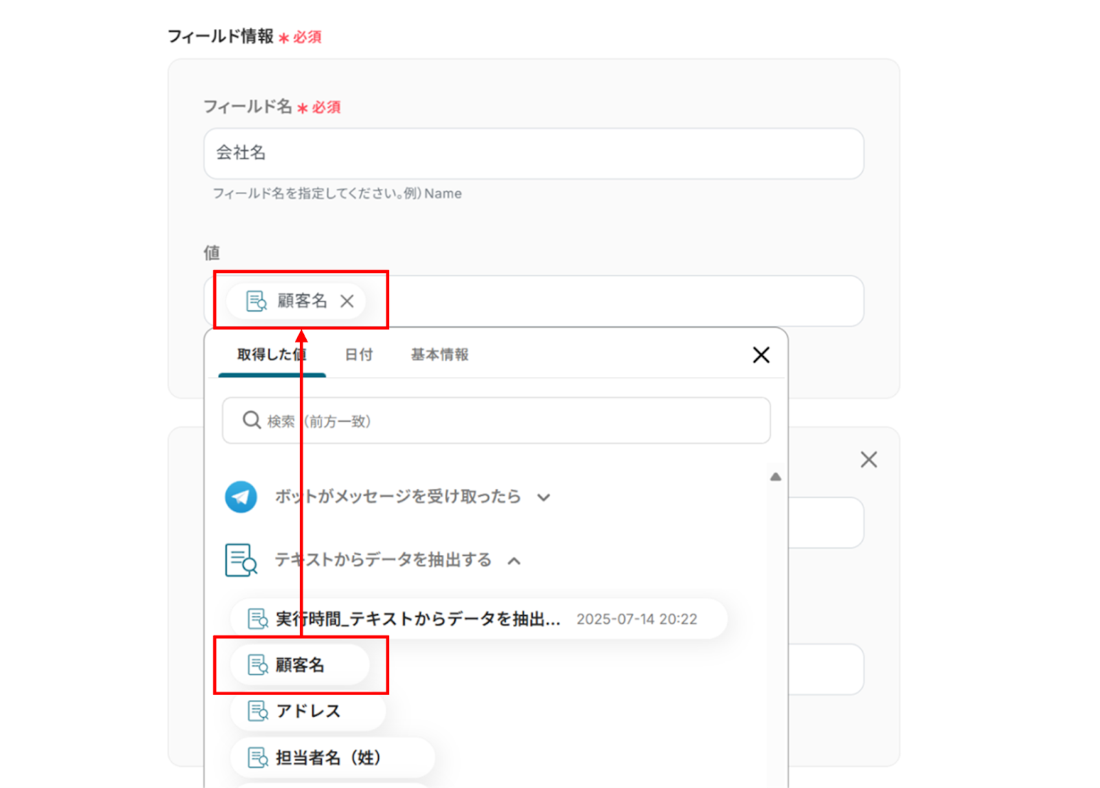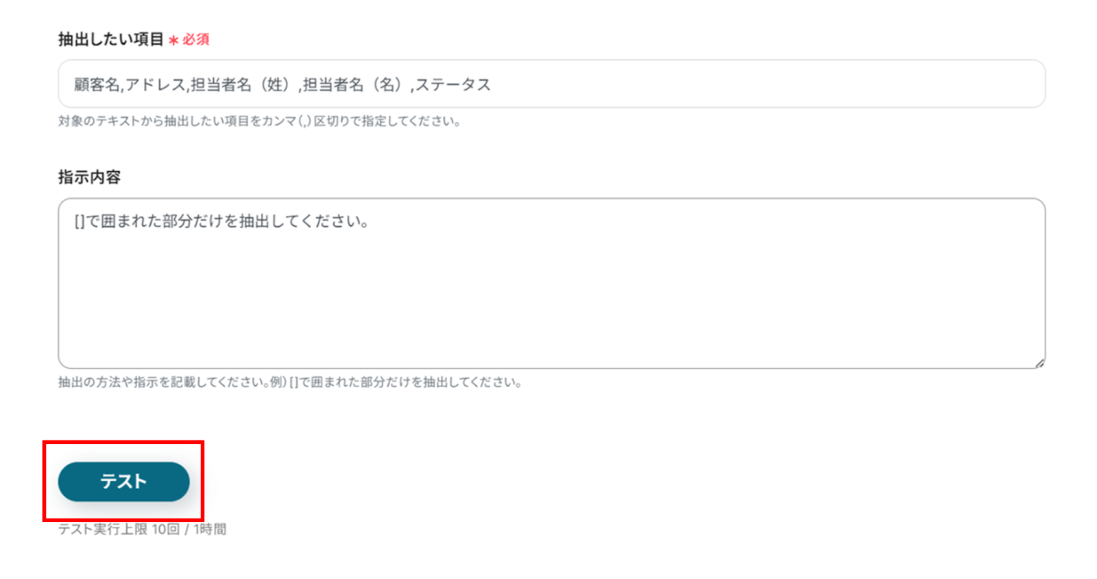 テストに成功すると、取得した値にAIが抽出したテキストが反映されます。