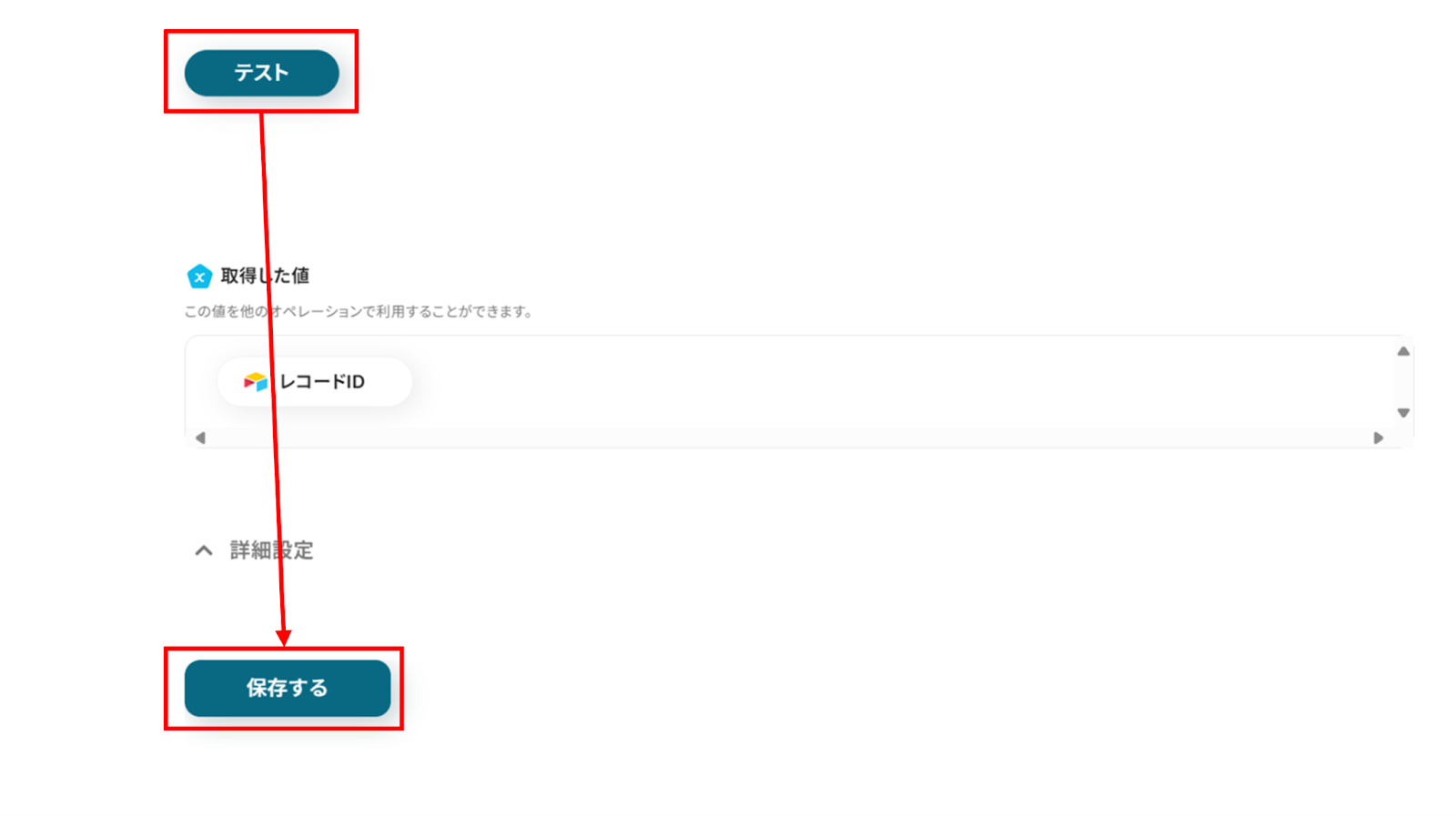 入力が完了したら「テスト」をクリックし、エラーが発生しなければ「保存する」をクリックします。