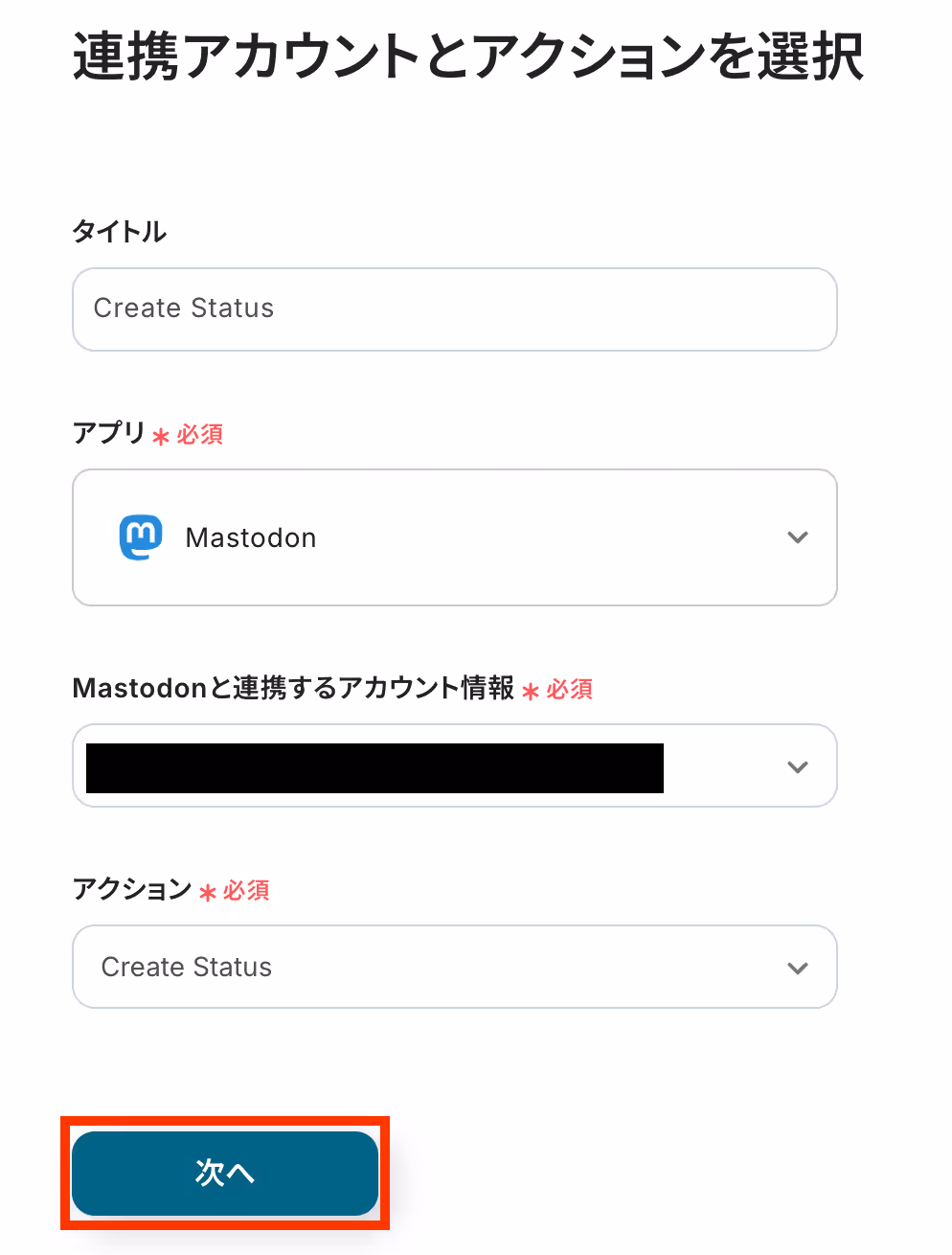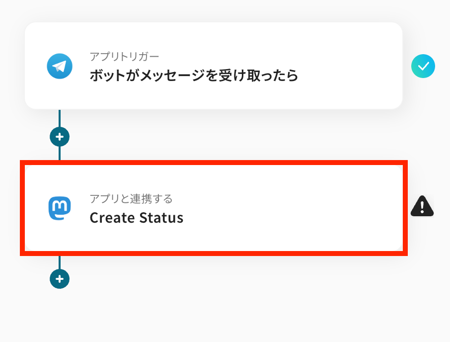 Telegramから取得した値を利用して、Mastodonでステータスを作成する設定を行います。