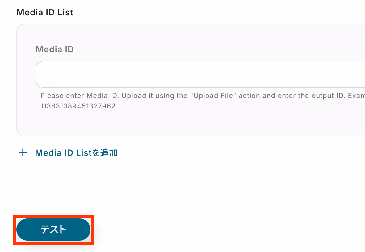 その他の設定を任意で行い、全ての設定が済んだら「テスト」ボタンをクリックします。