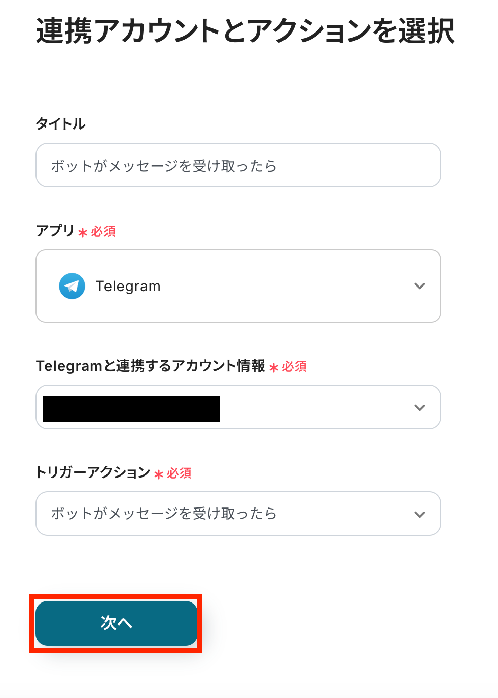ステップ3:Telegramのトリガー設定