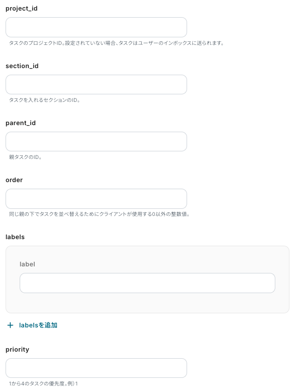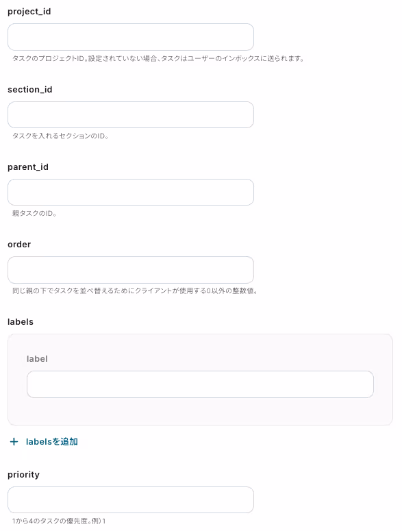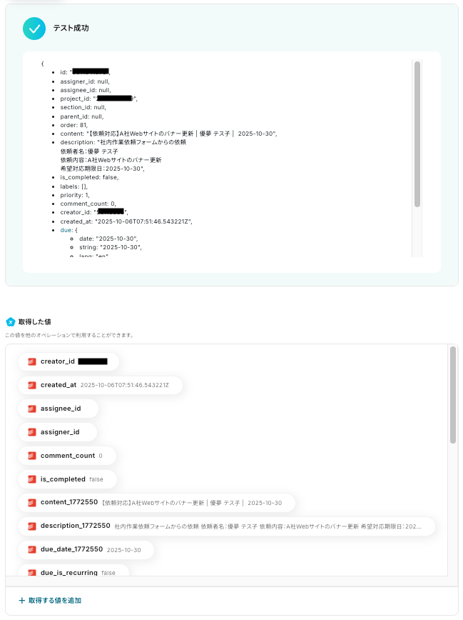 設定した取得した値は、「ステップ4:Todoistのアクション設定」で使用します。
