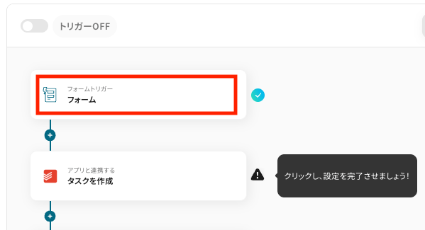 - フォームトリガーおよびTodoistとOneDriveのアクション設定