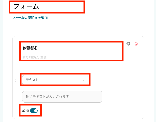 このフローでは、Yoomに用意されているフォーム機能を活用して、フォームを作成します。