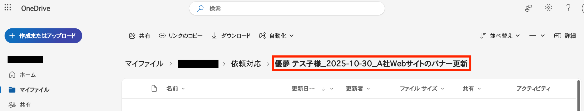 無事に、フォームの回答をもとに新しいフォルダがOneDriveに作成されていることが確認できました!