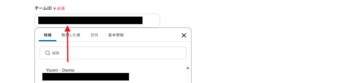 チームIDとチャンネルIDは枠内をクリックし、それぞれ候補から選択してください。