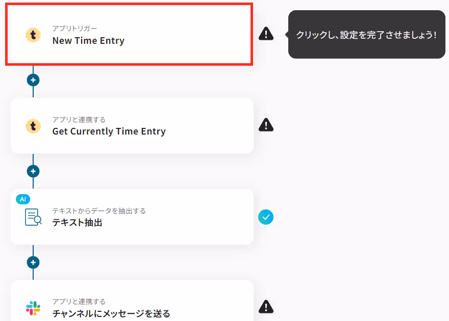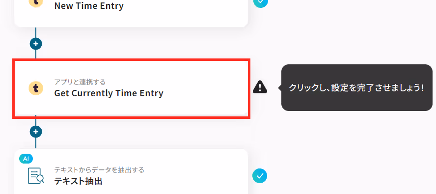 TogglでTime Entryが作成され、作業が開始されたことを通知するために、AIによるテキスト抽出機能を用いて、日時を日本時間に変更する設定をしていきます。
