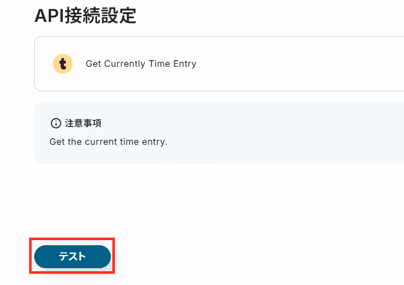 計測を開始したら、Yoomの設定画面に戻って「テスト」をクリックしてみてください。