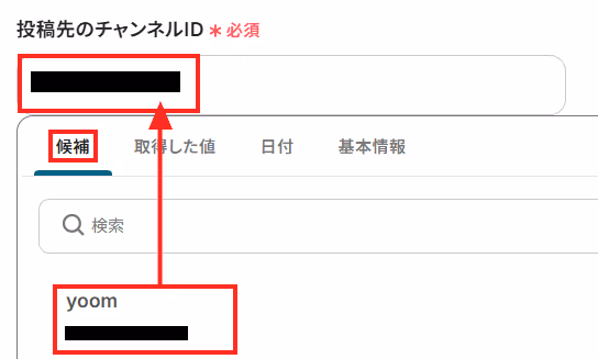 まずは「投稿先のチャンネルID」を、連携しているSlackの候補から選択してください。