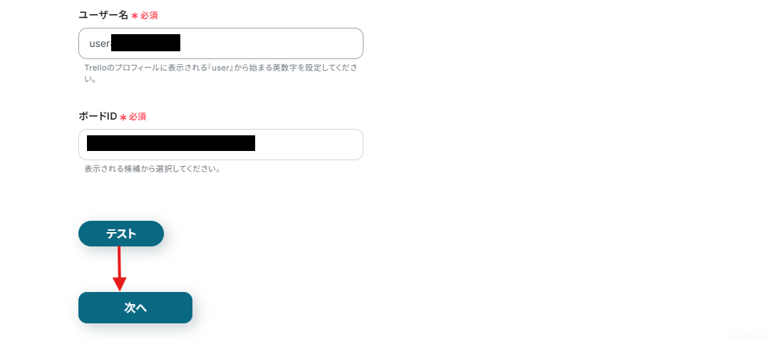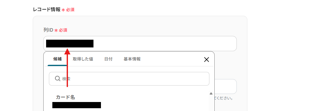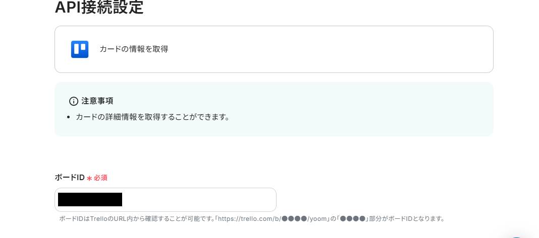 ボードIDは枠内をクリックすると、候補が表示されるので選択してください。