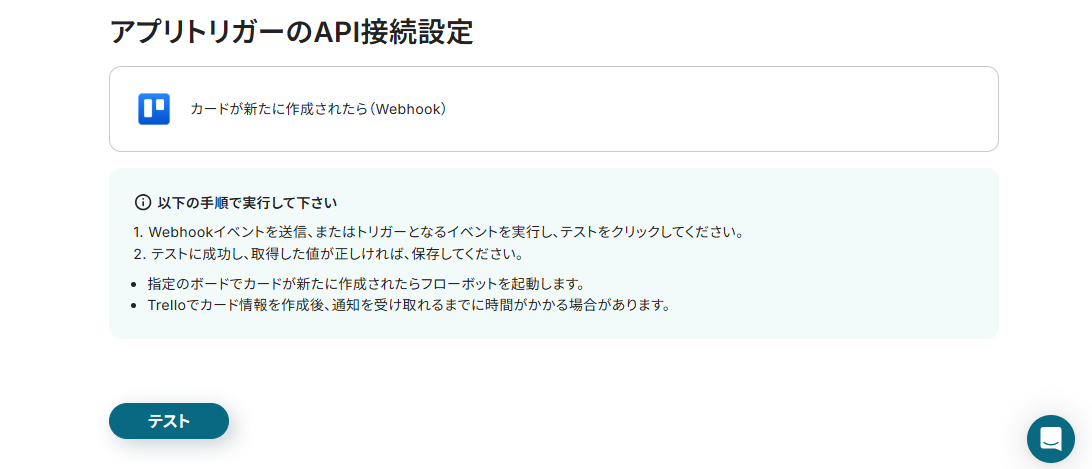 先ほど設定したTrelloのボードに、テスト用のカードを登録してください。