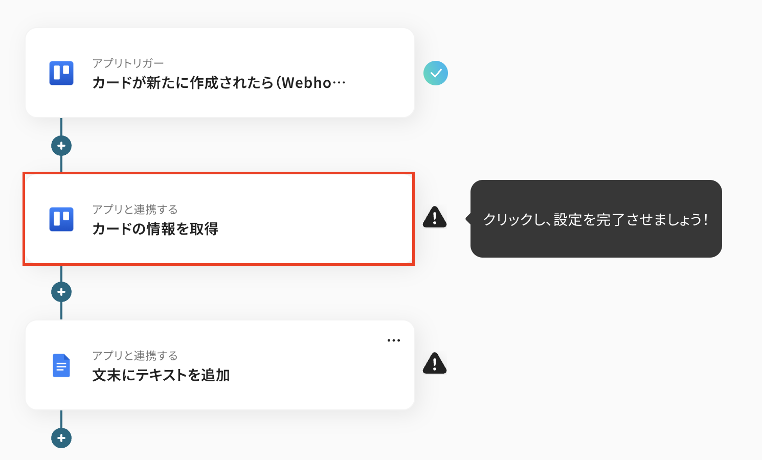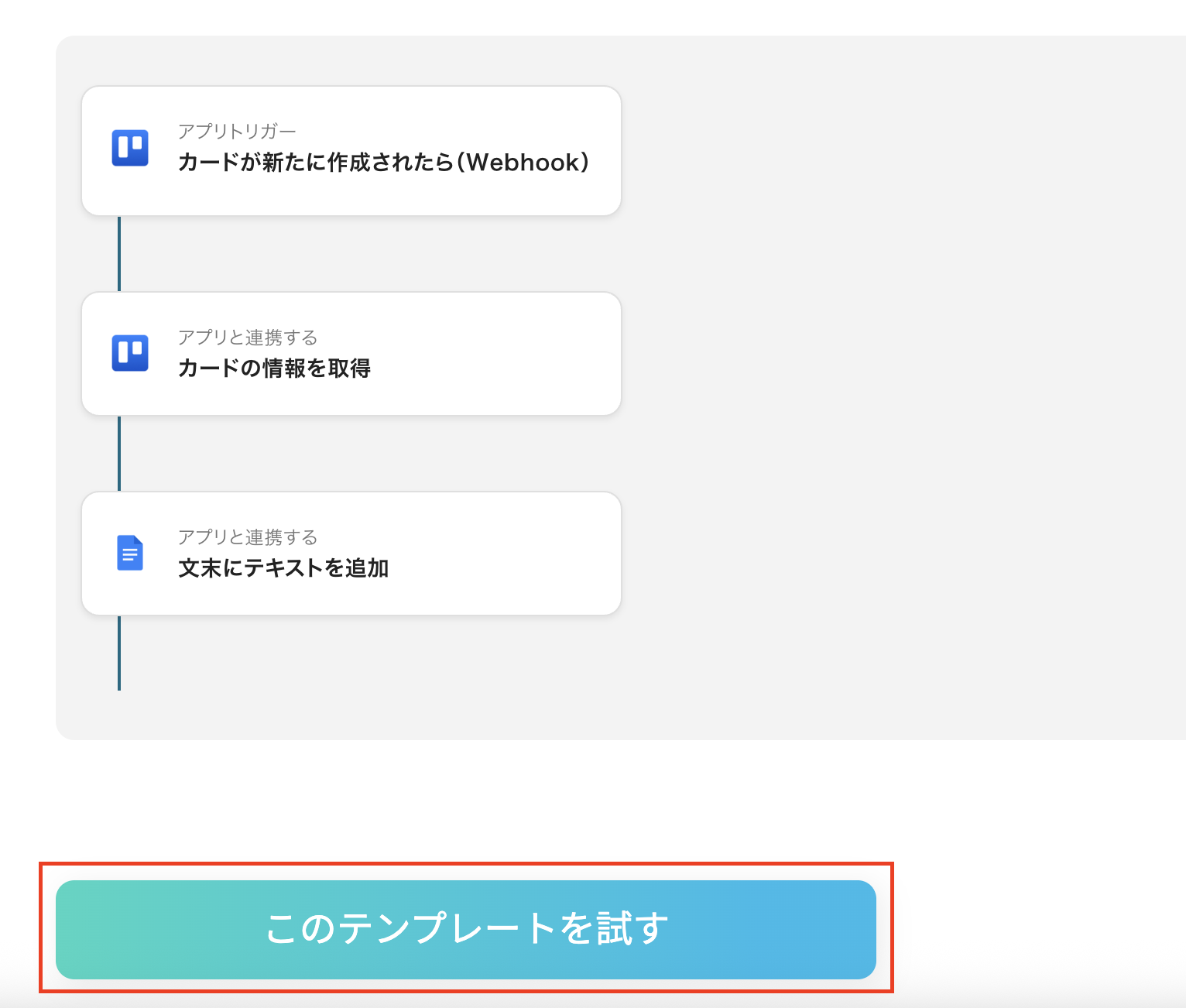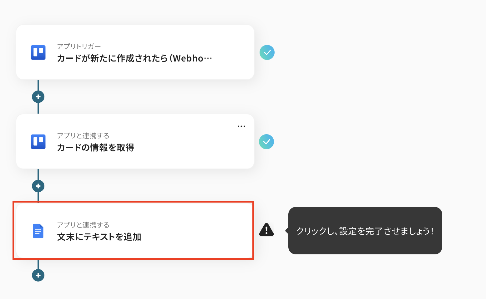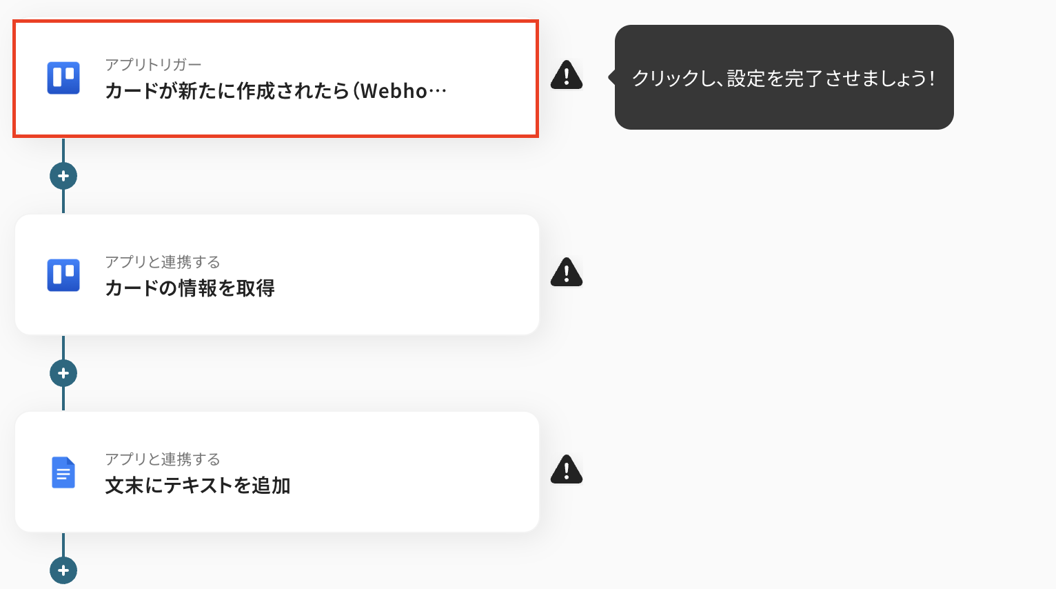 例えば、Trelloに新しいカードが追加された瞬間に、その内容を指定のGoogle ドキュメントに自動で追記するといった処理が実現できます。