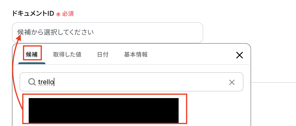 ドキュメントIDを候補から選択します。