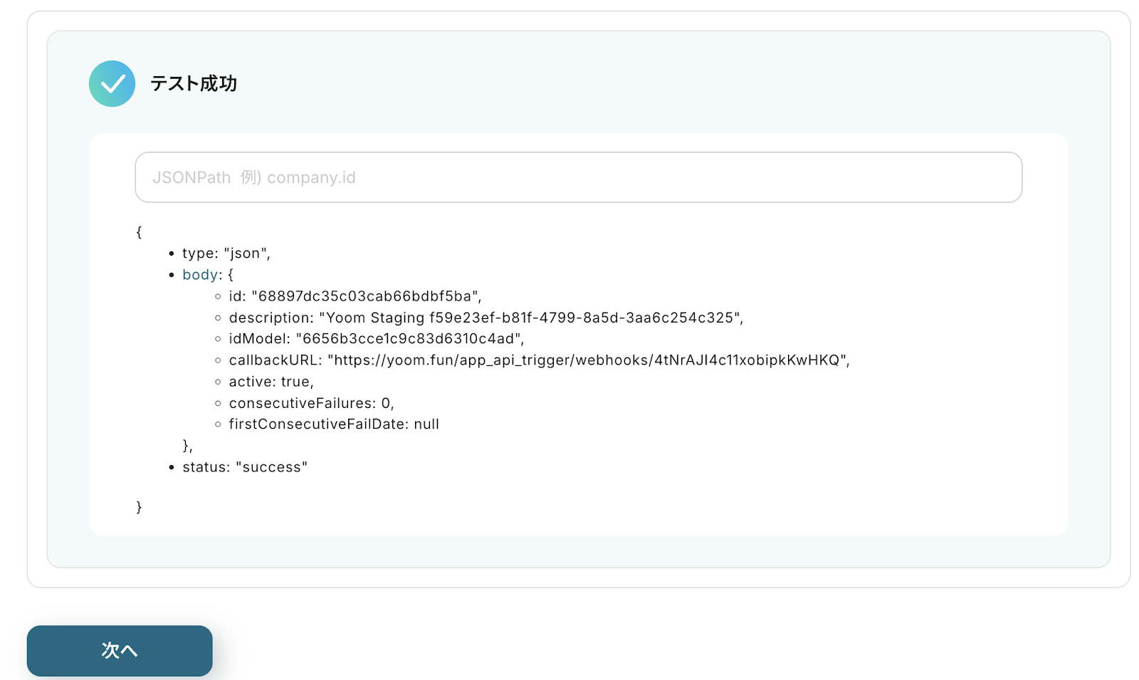 その後、Yoomに戻りテストをクリックしましょう。