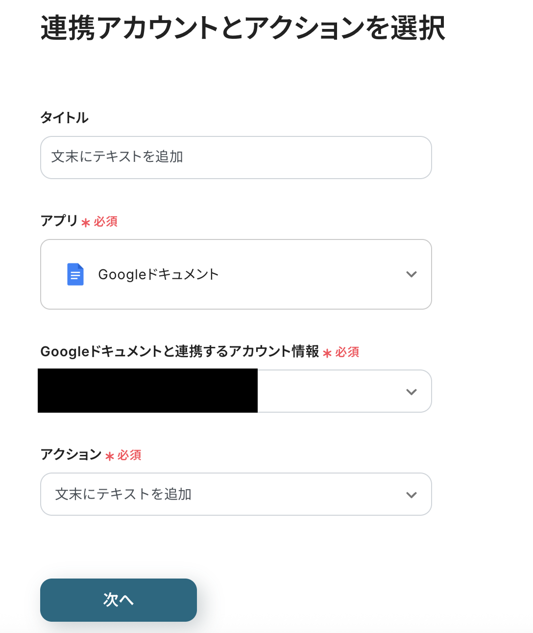 連携アカウントとアクションを選択の画面を設定します。