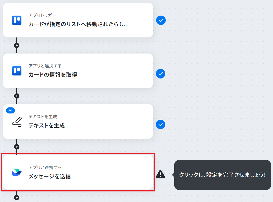 ステップ5と同様、Trelloやテキスト生成機能から取得した値、固定の文章を組み合わせて自由にカスタマイズできます。