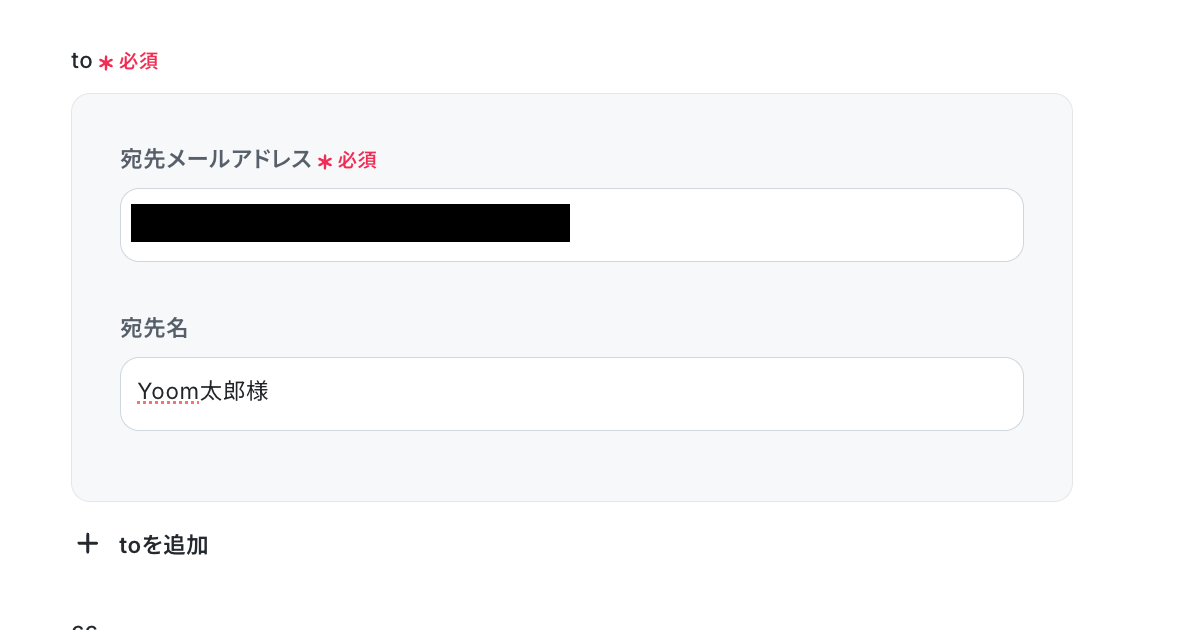 宛先メールアドレスと宛先名を手動で設定しましょう。