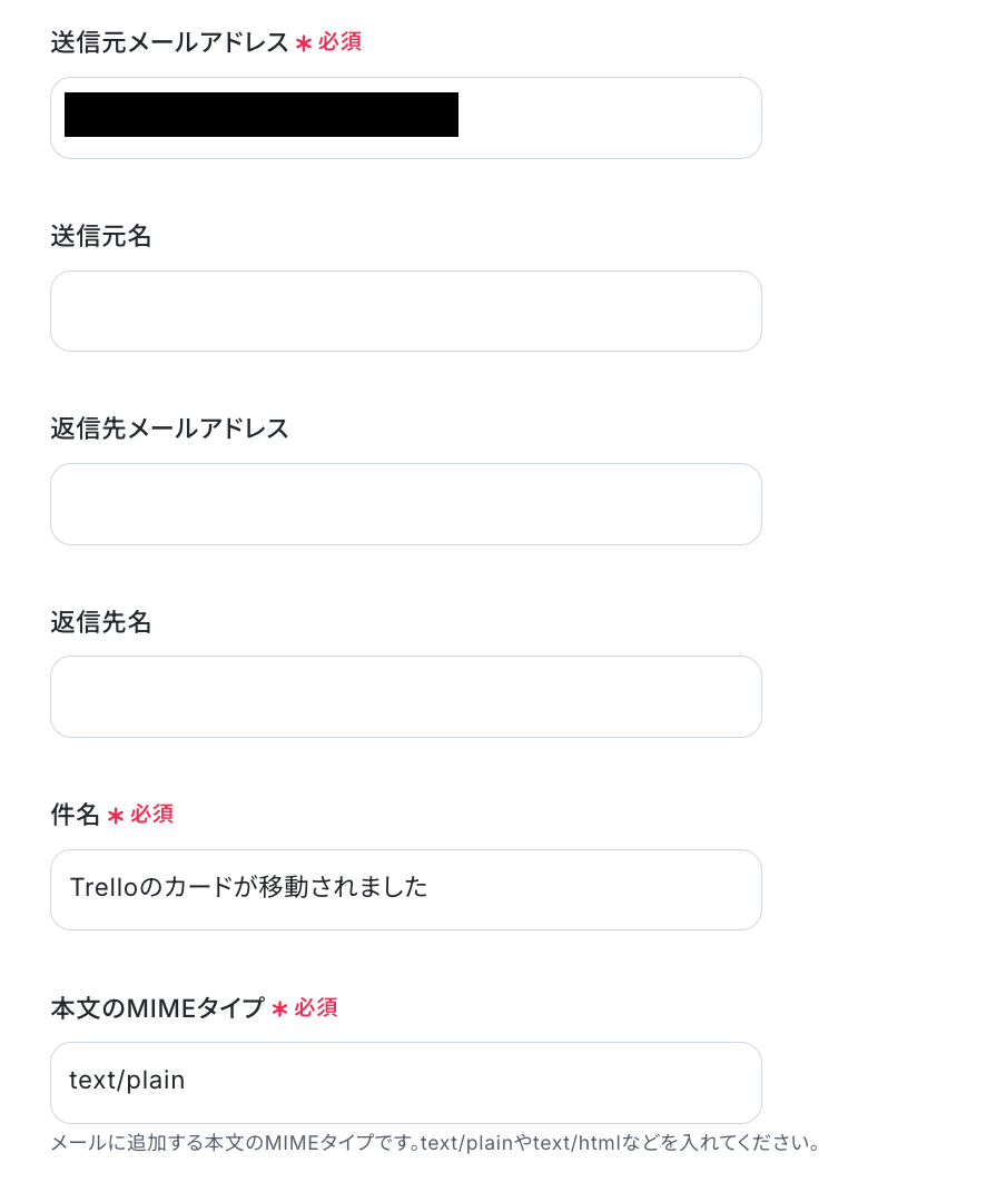 - SendGridの「メールを送信する」アクションでは、送信するメールの件名、本文、送信元アドレス、宛先アドレスなどを、業務の要件に合わせて任意の内容に設定してください。kintoneから取得したレコード情報(例:顧客名、案件詳細、更新後のステータス等)をメール文中に含めることで、状況に応じた通知が可能です。