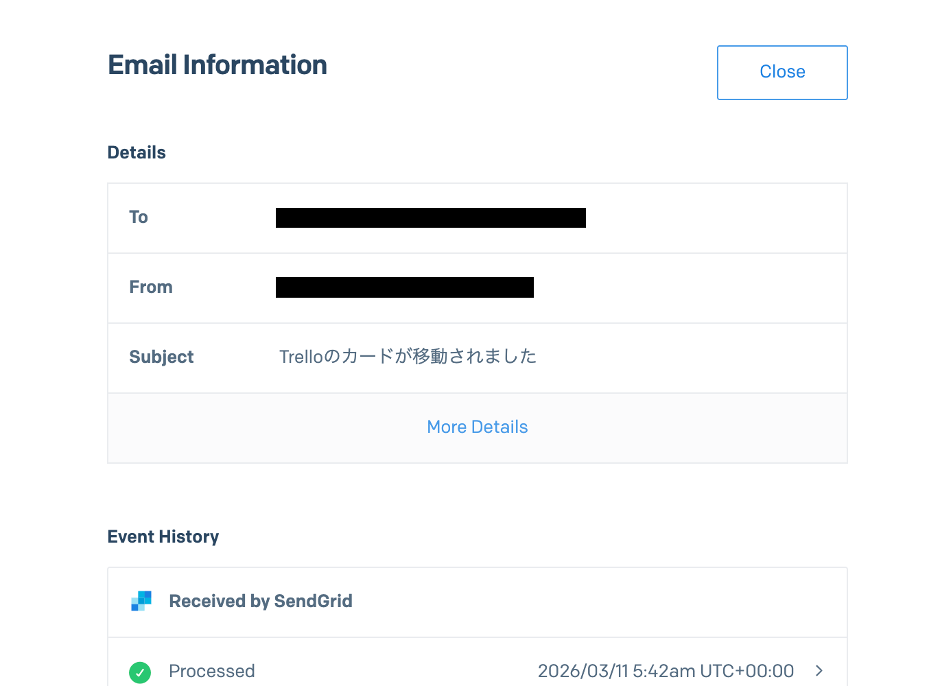 これで、Trelloでカードが移動されると、自動的にSendGridでメールが送信されるようになります!