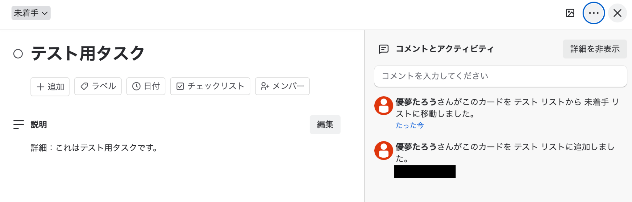 Trello上で、テストのためにタスクを作成して任意のリストに移動させます。