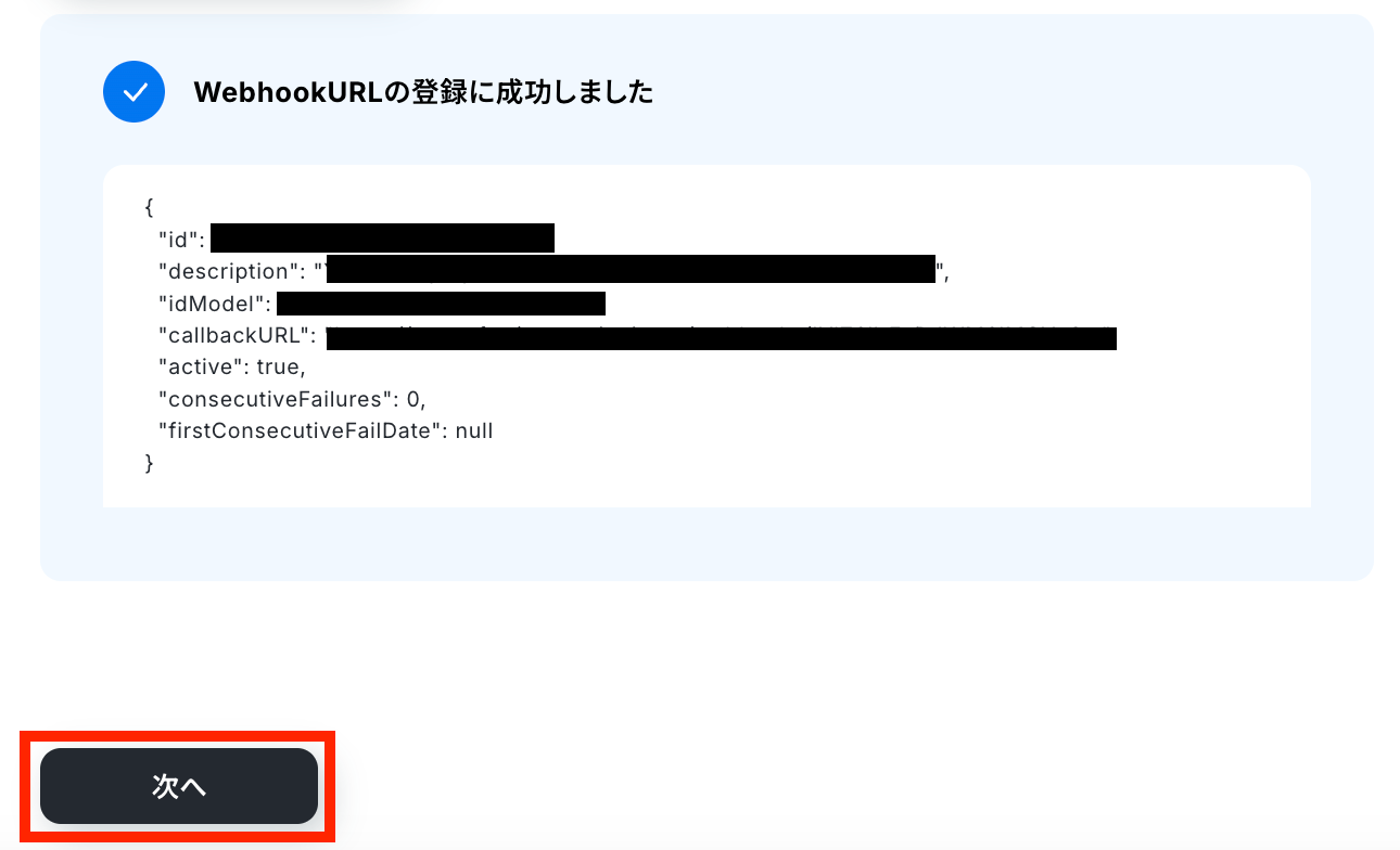WebhookURLの登録に成功したら、次の設定へ進みます。