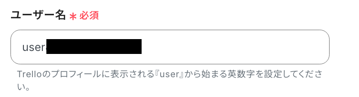 「ユーザー名」は、入力欄下の注釈を参照して直接入力してください。