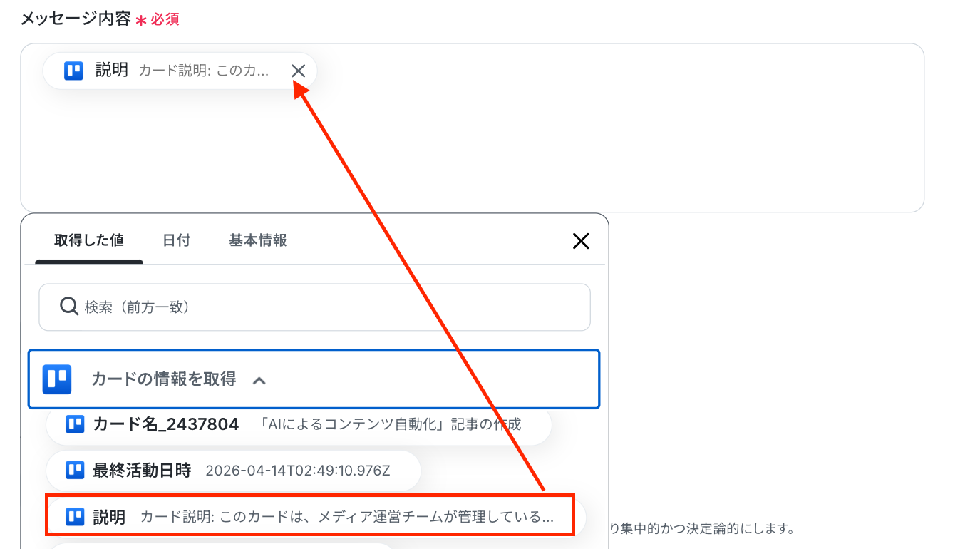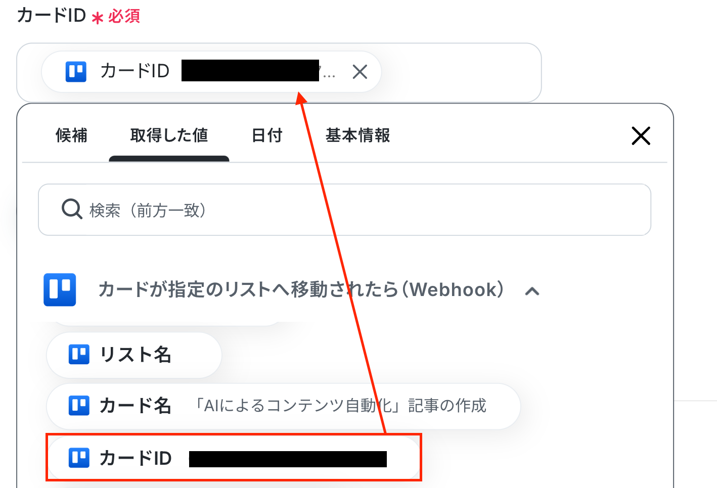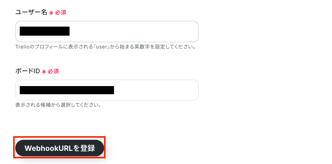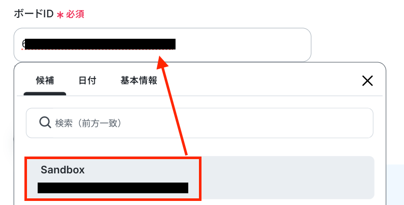 「ボードID」は、入力欄をクリックすると候補が表示されるので、候補から連携したいボードを選択しましょう。