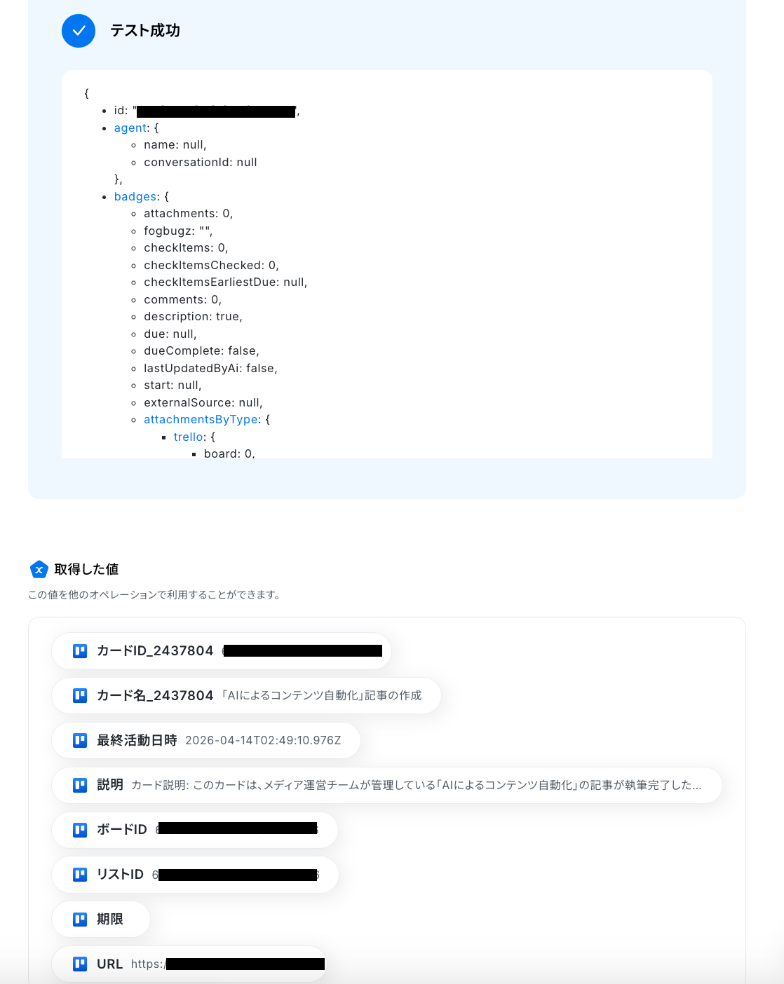 - Trelloのトリガー設定では、自動化の対象としたいボードのID、およびフローを起動させたいリストのIDを任意で設定してください。