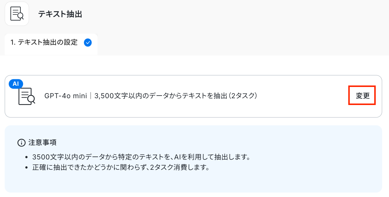 - 次に、オペレーションでテキスト抽出機能を設定し、受信したメール本文から投稿に必要な内容を抽出します