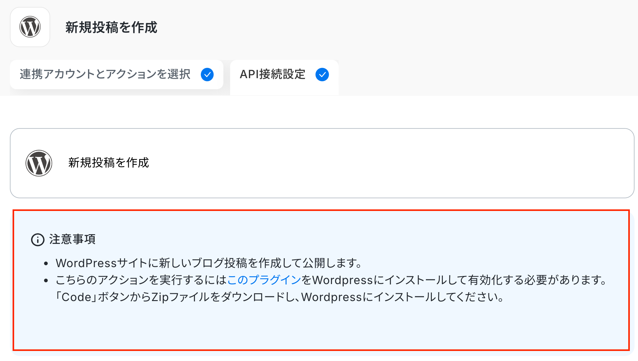 - WordPress.orgで新規投稿を作成するアクションでは、投稿のタイトルや本文だけでなく、カテゴリー、タグ、スラッグ、ステータス(公開・下書きなど)、パスワード保護の有無などを任意で設定してください。
