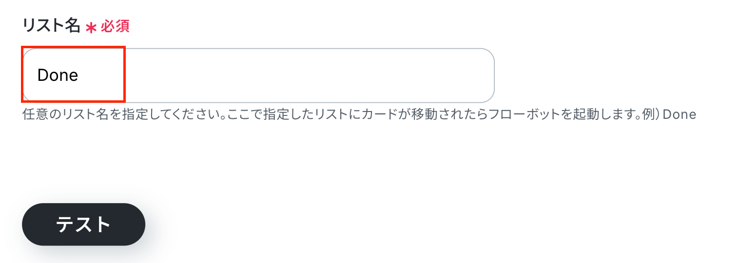 「リスト名」にはカードを移動させたリスト名を直接入力してください。