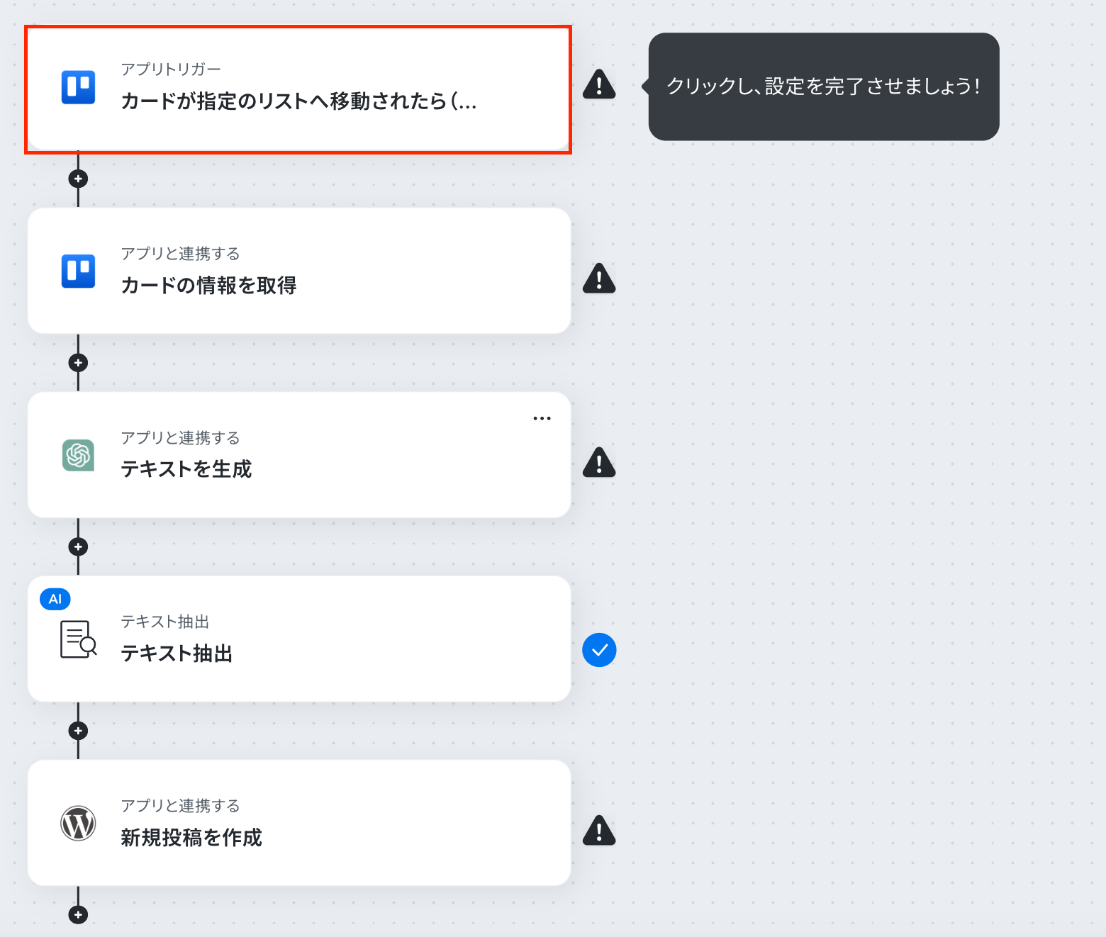 ステップ1:Trello、ChatGPT、WordPress.orgのマイアプリ連携