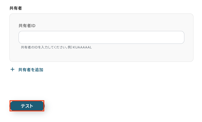 入力が完了したら、設定内容とトリガーの動作を確認するため「テスト」をクリックします。