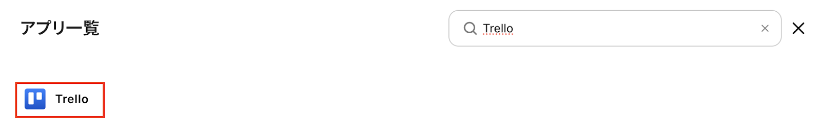 新規接続を押したあと、アプリのメニュー一覧が表示されるので Trelloと検索し対象アプリをクリックしてください。