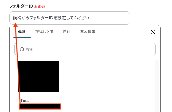 入力欄をクリックすると連携が有効になっているアカウントから候補が表示されるので、対象の項目を選択しましょう。