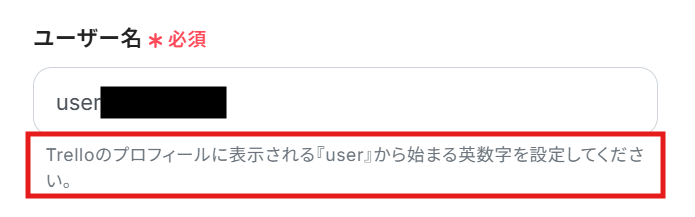 こちらもステップ1でマイアプリ連携した、Trelloのアカウント情報が自動で表示されます。