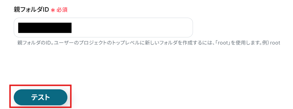 親フォルダIDを入力したら、「テスト」をクリックします。
