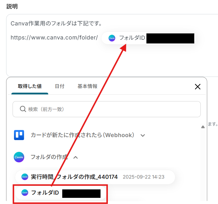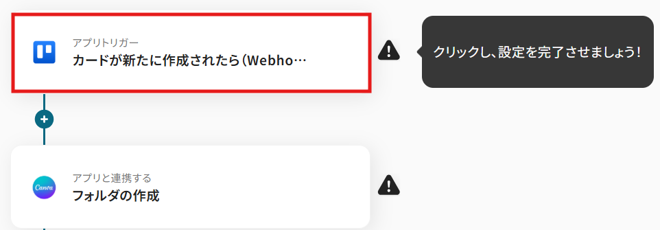 次に、Trelloで作成したカード情報を基にCanvaにフォルダを作成する設定を行います。