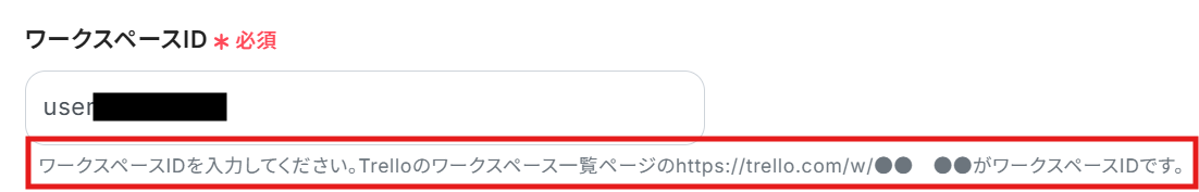 赤枠内を参考にして、ワークスペースIDを入力します。
